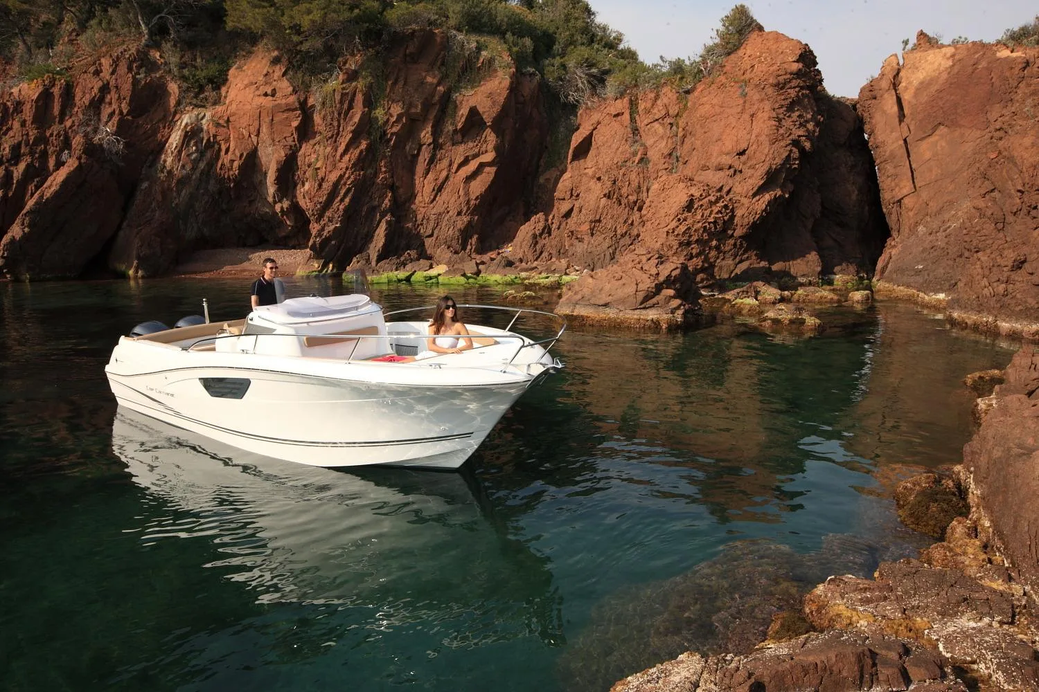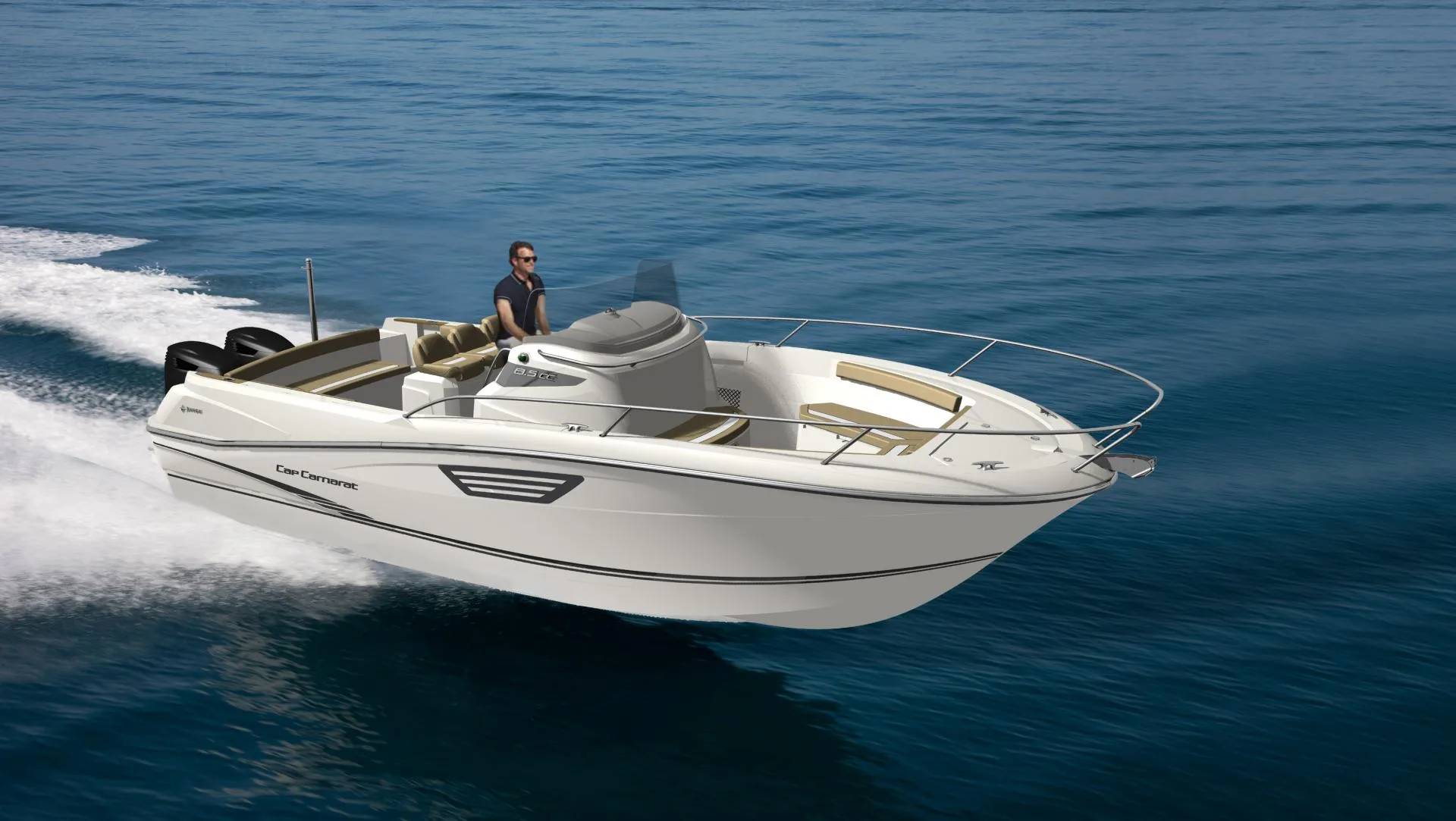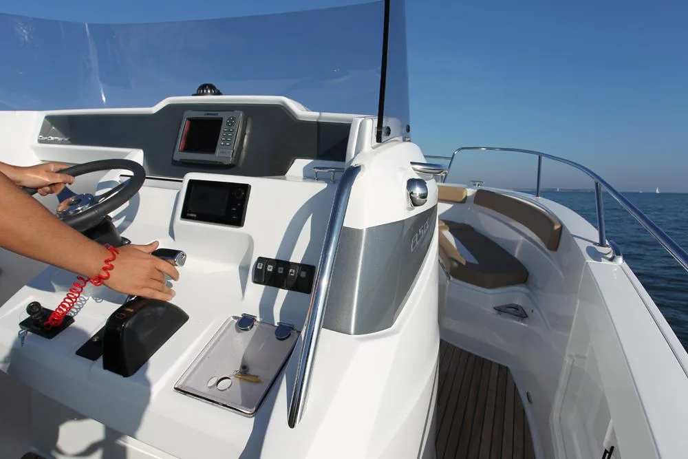 Gracias a la mejora de las ideas recibidas, el Jeanneau Cap Camarat 8.5CC Consola Central reúne un excepcional diseño (casco esculpido, Cuadro de mandos envolvente), una comodidad incomparable (2 solariums – 2 camas – Asiento reclinable, 3 plazas) y unas prestaciones de primer orden (carena en V evolutiva Jeanneau – monomotor o bimotor).