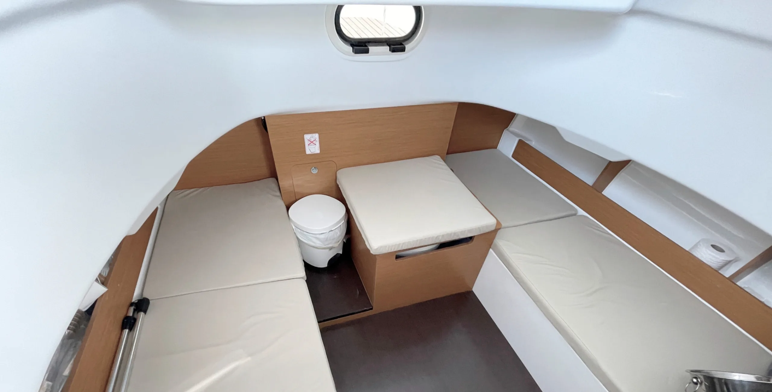 En el interior disponemos de dos camas, ojos de buey en ambas camas y luz interior, portillo, wc con bomba manual, lavabo con agua dulce, radio bluetooth.